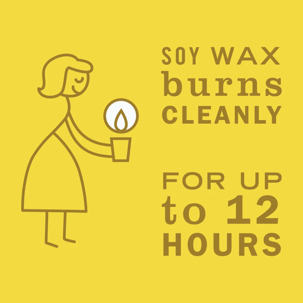 - Scented candle made from plant-derived soy wax and essential oils